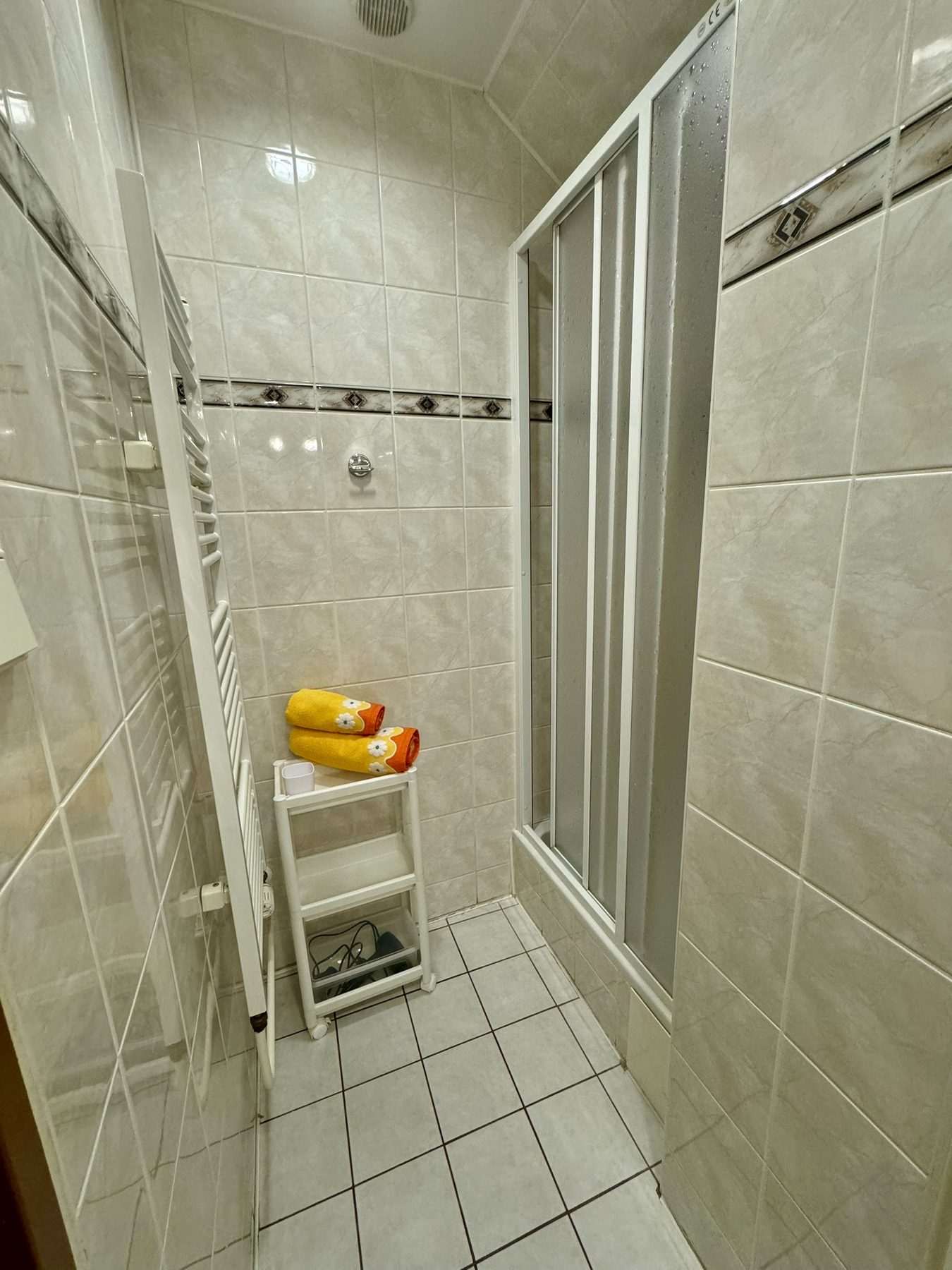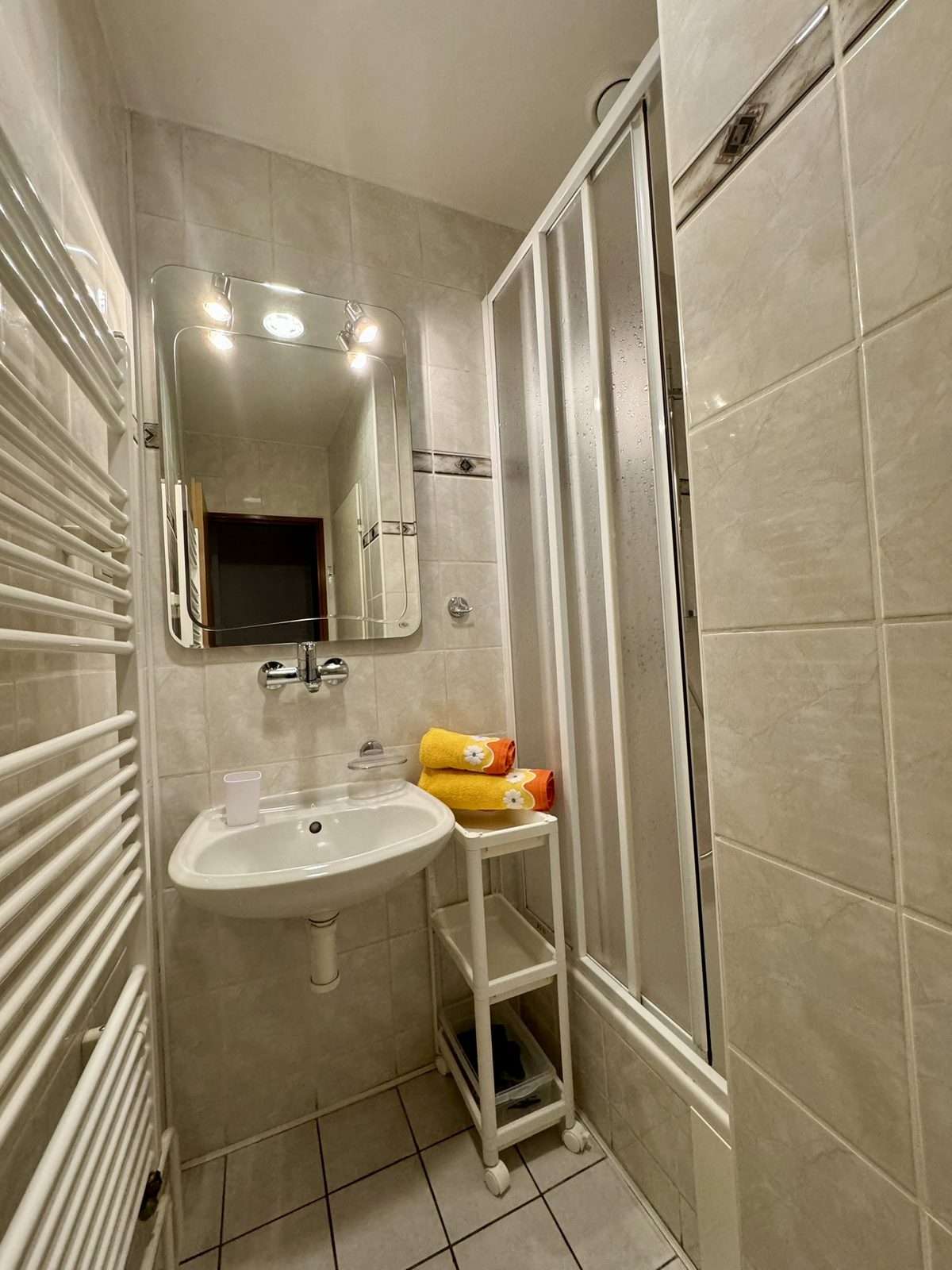 Dva dvoulůžkové pokoje v podkroví s vlastní koupelnou se sprchou a WC pro tyto dva pokoje.