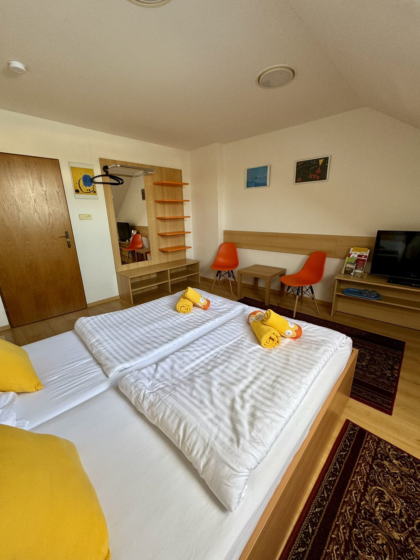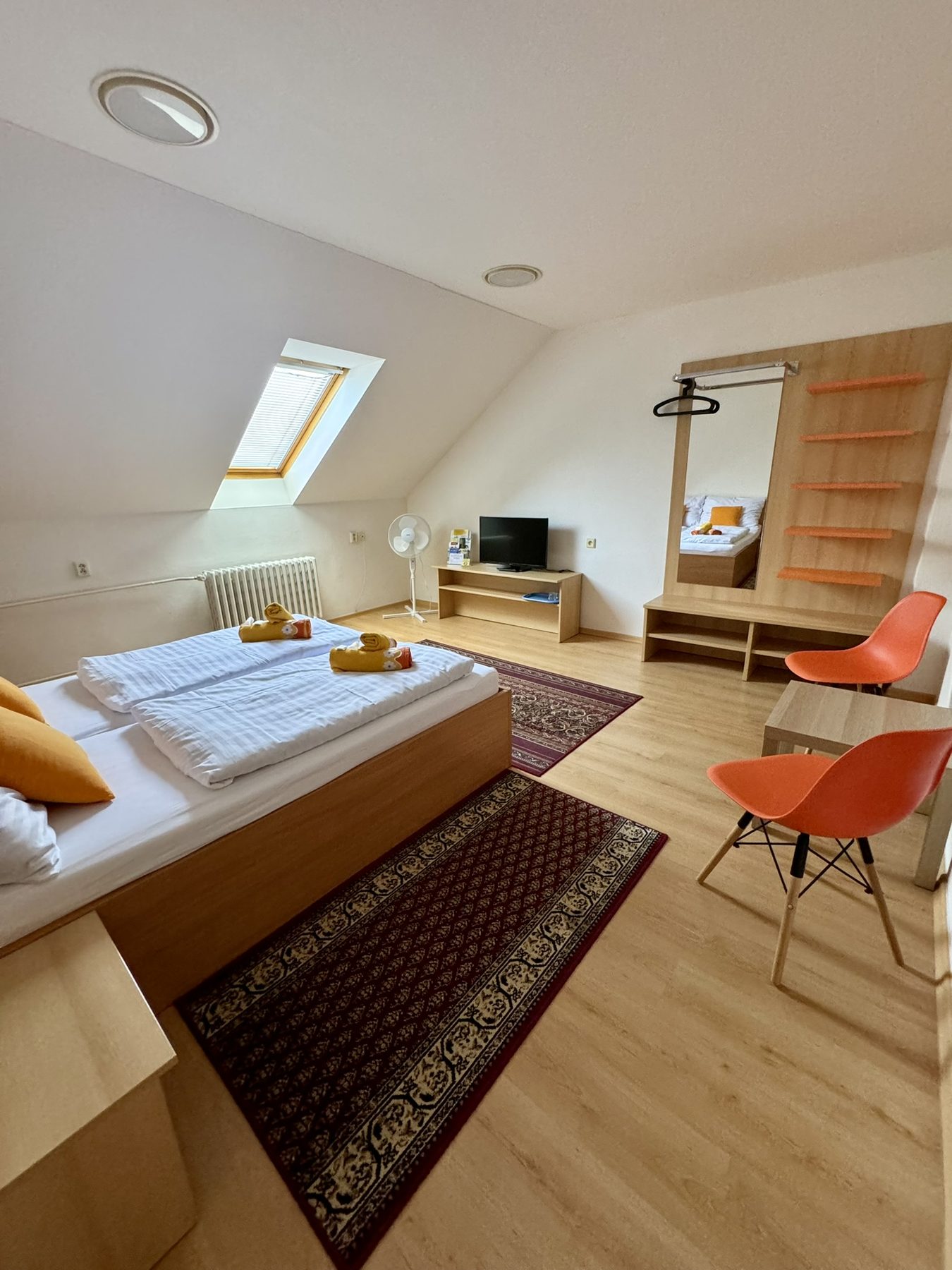 Jednolůžkový a dvoulůžkový pokoj s vlastní koupelnou. Vhodné pro menší rodinu nebo dvojici s doprovodem.